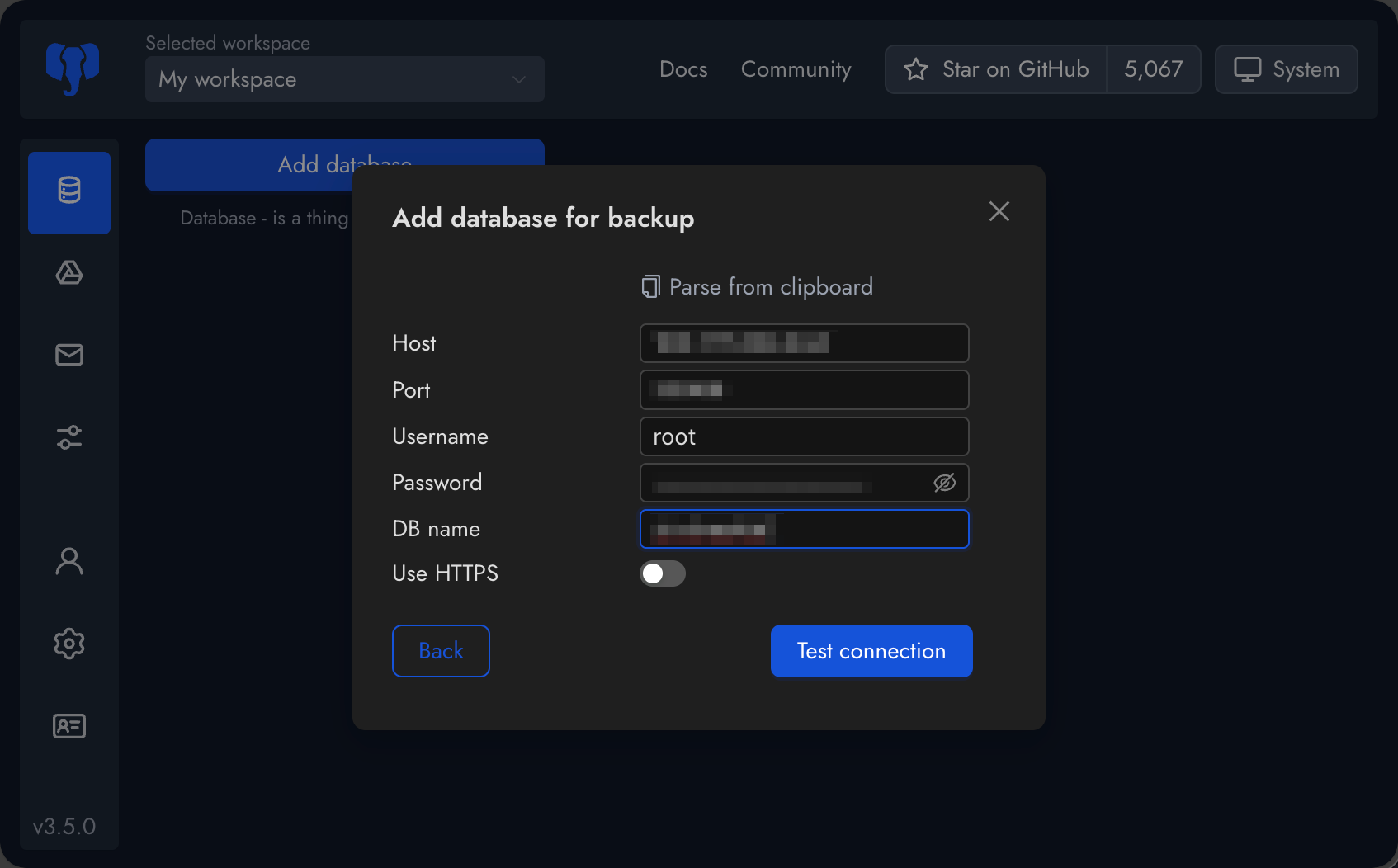 在 Databasus 中创建一个备份任务非常简单,通常只需要在 Web 界面中通过以下 4 个主要步骤即可完成: