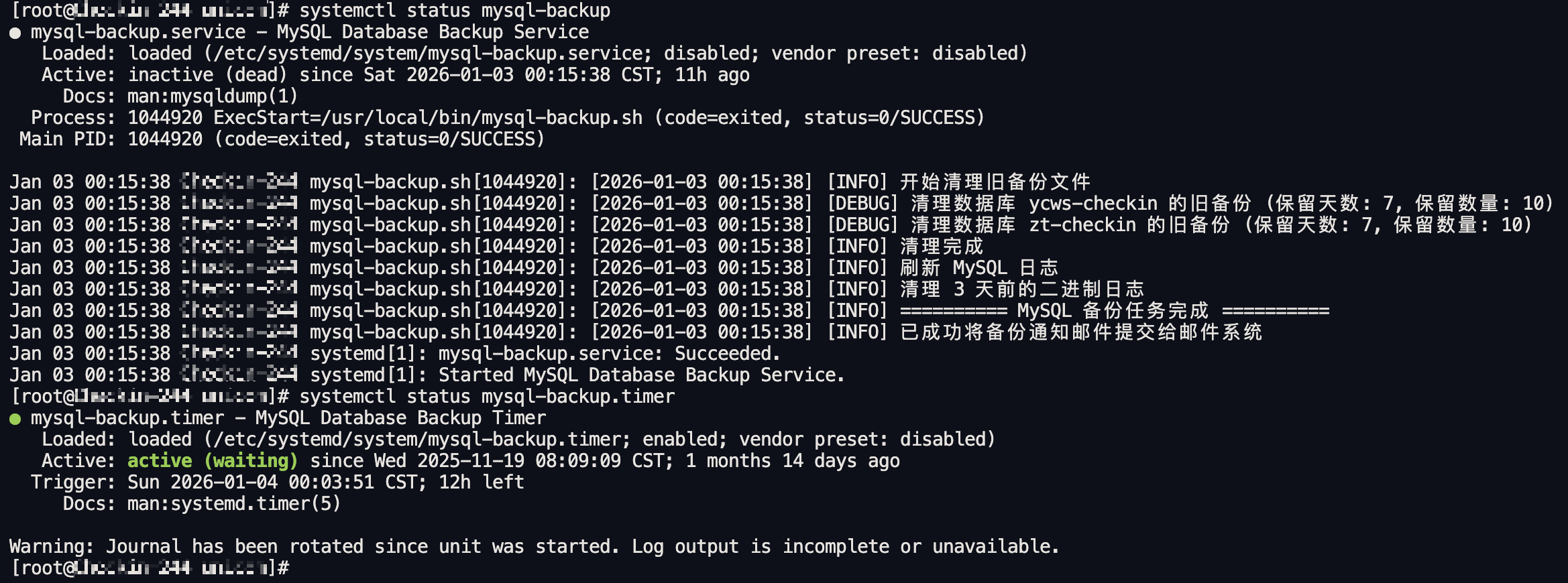 备份程序自身的管理交给 systemd,运行情况一目了然。